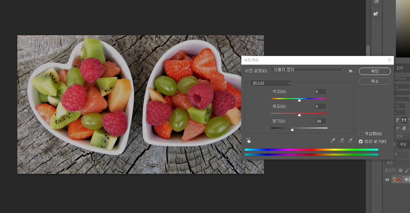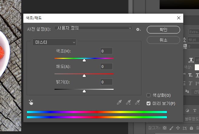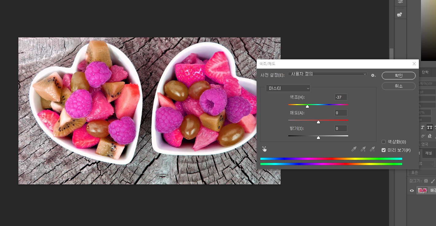 이미지 - 조정 - 색조/채도를 클릭해주세요!